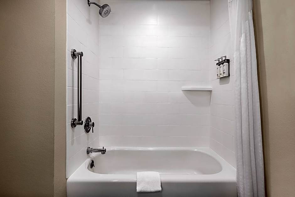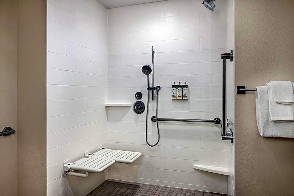 This room features a flat-screen cable TV, a microwave and a refrigerator.